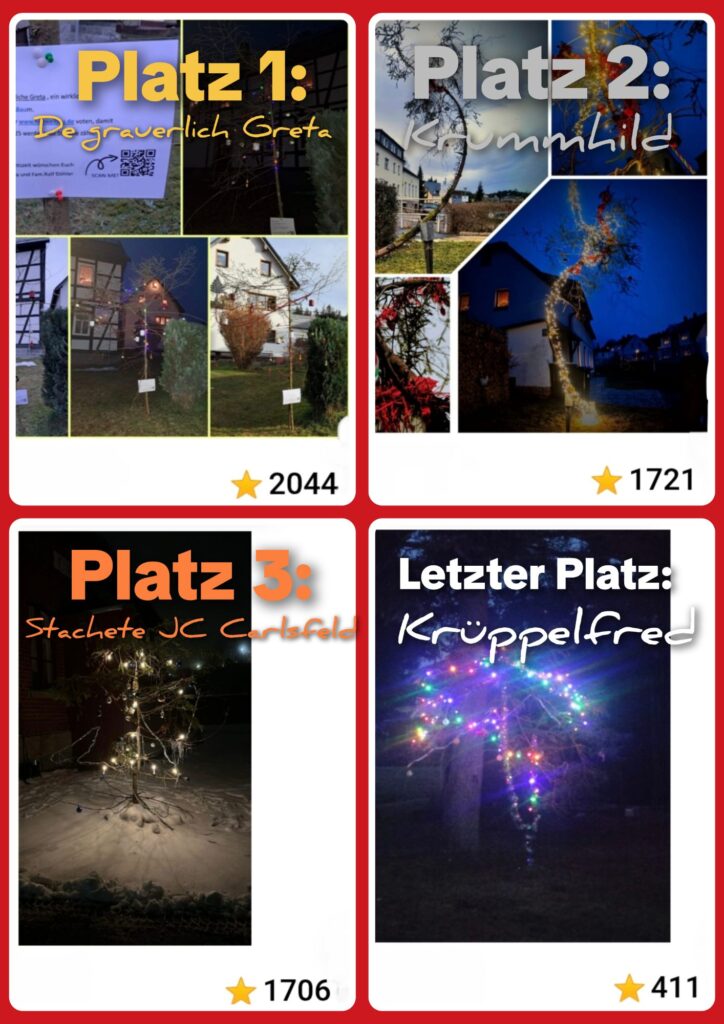 Wir haben ihn auch 2025 gefunden! unser hässlichster Weihnachtsbaum ist dieses Jahr: „De grauerliche Greta“ ! Glückwünsche natürlich auch an die Platzierten. Die Pokal gibt es wie immer im neunen Jahr.